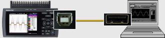 The GL820 can be controlled by a PC if connected by USB cable, allowing transfer of data to a PC in real-time.