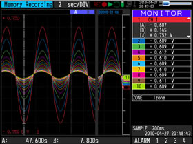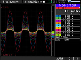 Utilises a bright clear 5.7-inch wide TFT color LCD monitor (VGA: 640 x 480 dots). Makes it easy to read data in waveform or digital form and to check your measurement parameter settings. The background color of the screen can be set to black or white.