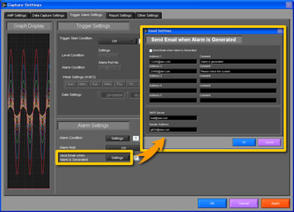 Alarm warnings can be sent via E-mail when computer is connected to LAN.
