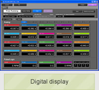 Three screens are available to view measurements in replay mode. The Y-T (waveform) display, the digital display and the X-Y graph can be selected to show your specified data. The maximum, minimum, average and peak-to-peak values between cursors are shown when using the digital display screen.
