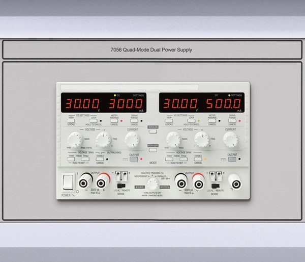 A high performance quad mode dual output DC power supply with true analog controls and digital functionality. The 7056 provides Two identical outputs as per the 7052, with Tracking and Parallel modes.