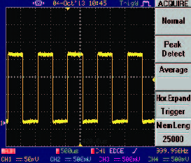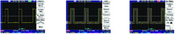 Oscilloscopes with long memory facilitate users to retrieve more waveform data in a certain period of time. The GBS‐1000 series, with 25k points memory depth, allows users to meticulously observe signals. Users, via the Acquire function of the GBS‐1000 series, can select 25k or 500 points memory depth to analyze complex waveforms or acquire fast updated waveforms.