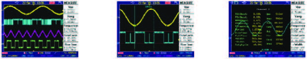The GBS‐1000 series provides 27 automatic measurement selections including voltage, period and time delay. Each channel can execute 5 measurement items simultaneously. 10 measurement results of two channels combined can be shown on the screen at the same time. All measurement results displaying on the screen allow users to efficiently observe all measurement parameters so as to better interpret
