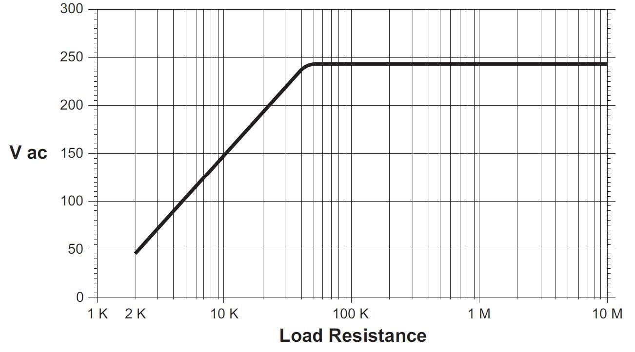 | LoZ >3 kΩ load | 60 V ac typical 50 V ac rms minimum |
