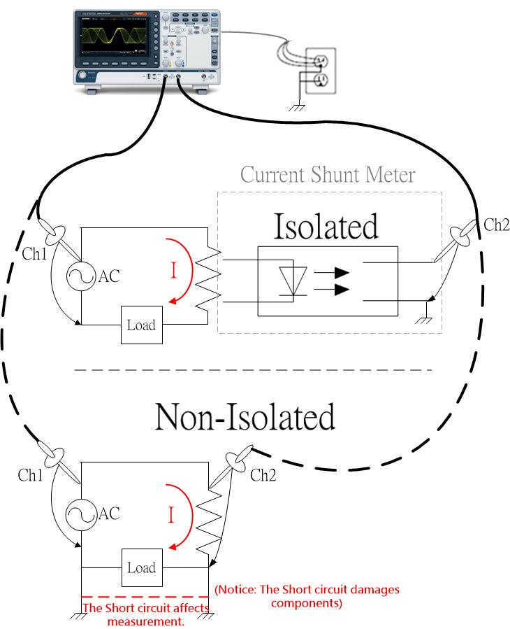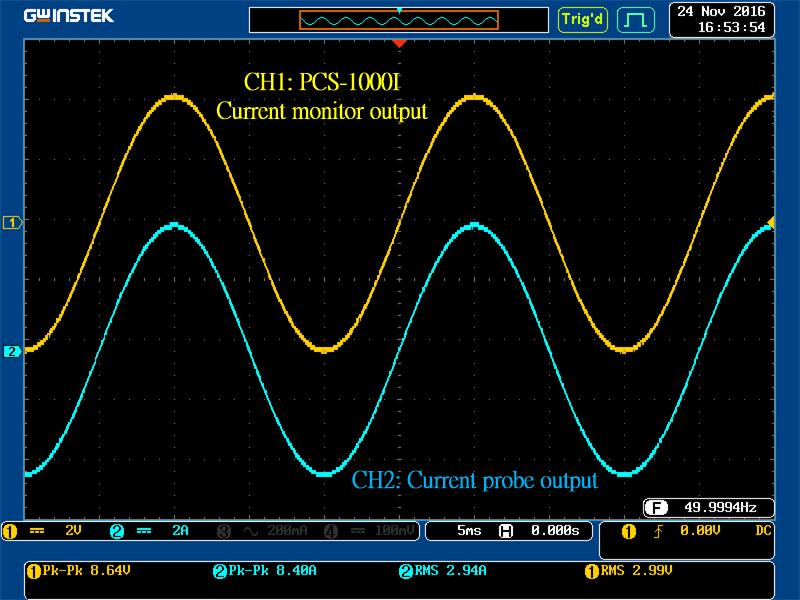 PCS-1000I provides a BNC output, which can connect with an oscilloscope to directly observe current waveform variation without using a current probe. General oscilloscopes do not have isolated channels and their input and output are structured at a common point, therefore, the output load will likely result in measurement errors. PCS-1000I’s isolated current output design can prevent measurement errors from an oscilloscope with non-isolated outputs. PCS-1000I, a high precision AC/DC current shunt meter, not only provides USB and GPIB communications interfaces for users to remotely control the instrument but also conducts simultaneous voltage and current measurements. The SCPI communications commands of PCS-1000I allow users to remotely control PCS-1000I via a PC to operate measurement data readbacks.