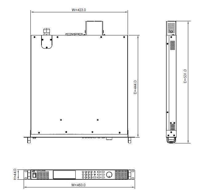 Outline dimensions (W*H*D) = 483.0x44.0x531.0 mm