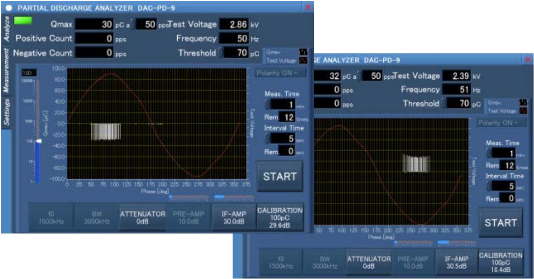 Covering widely required tests by IEC standards, DAC-PD-9 is an analyzer with a wide-band amplifier. The set incorporates the same conventional testing functions as low-frequency (narrowband), wide-band, and tuned measuring instruments do. Moreover, it is also capable of ultra wide-band measurements (up to 40 MHz). DAC-PD-9 allows a selection of optimum frequency bands suitable for any type of test specimens to enable quantitative and reproducible partial discharge measurements. In addition, the set can sample in time-series all data to enable statistical and quantitative measurements.