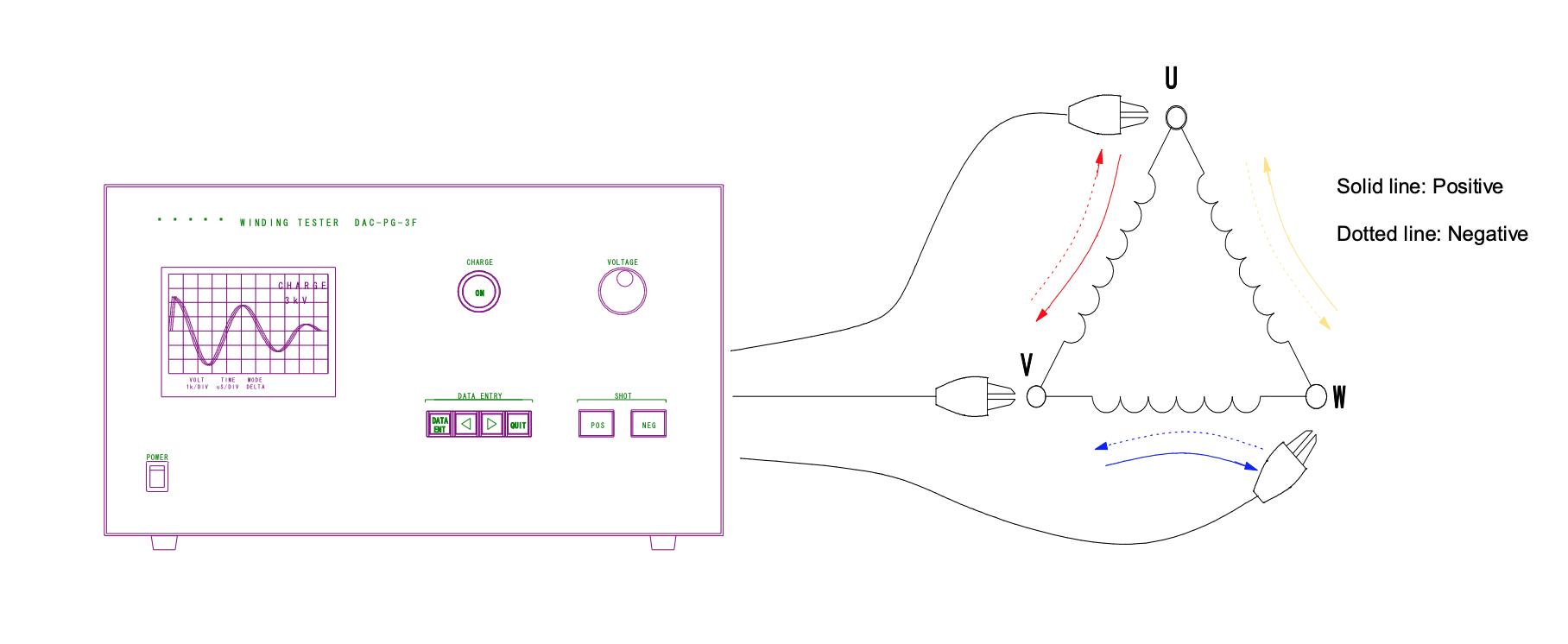 The DAC-PG-3F is impulse test equipment for testing of low-voltage rotator windings. The equipment is composed of a surge impulse generator circuit, phase selector unit (selection between U, V, and W), and waveform recorder circuit to provide a different method type of impulse testing instrument.