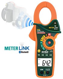 View ProductExtech EX845 - 0A AC/DC True RMS Clamp/DMM with IR Thermometer and Bluetooth MeterLink™